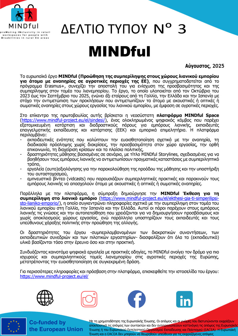 Έκθεση για τη συμπερίληψη στο λιανικό εμπόριο
